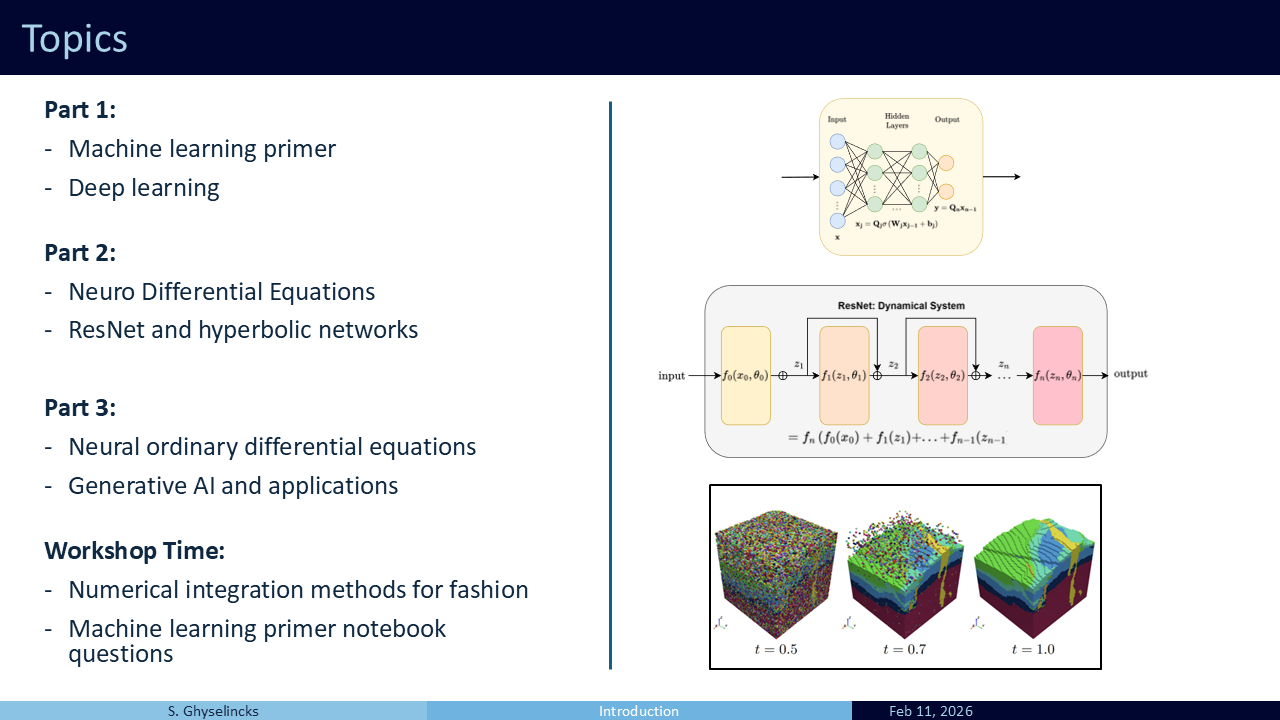 Part 3 covers Neural ODEs, where the deep learning model learns the continuous time dynamical system. It is a topic with many applications in the sciences, but we will look primarily at its application in generative AI. This type of network can also be used to solve complex inverse problems in geology.