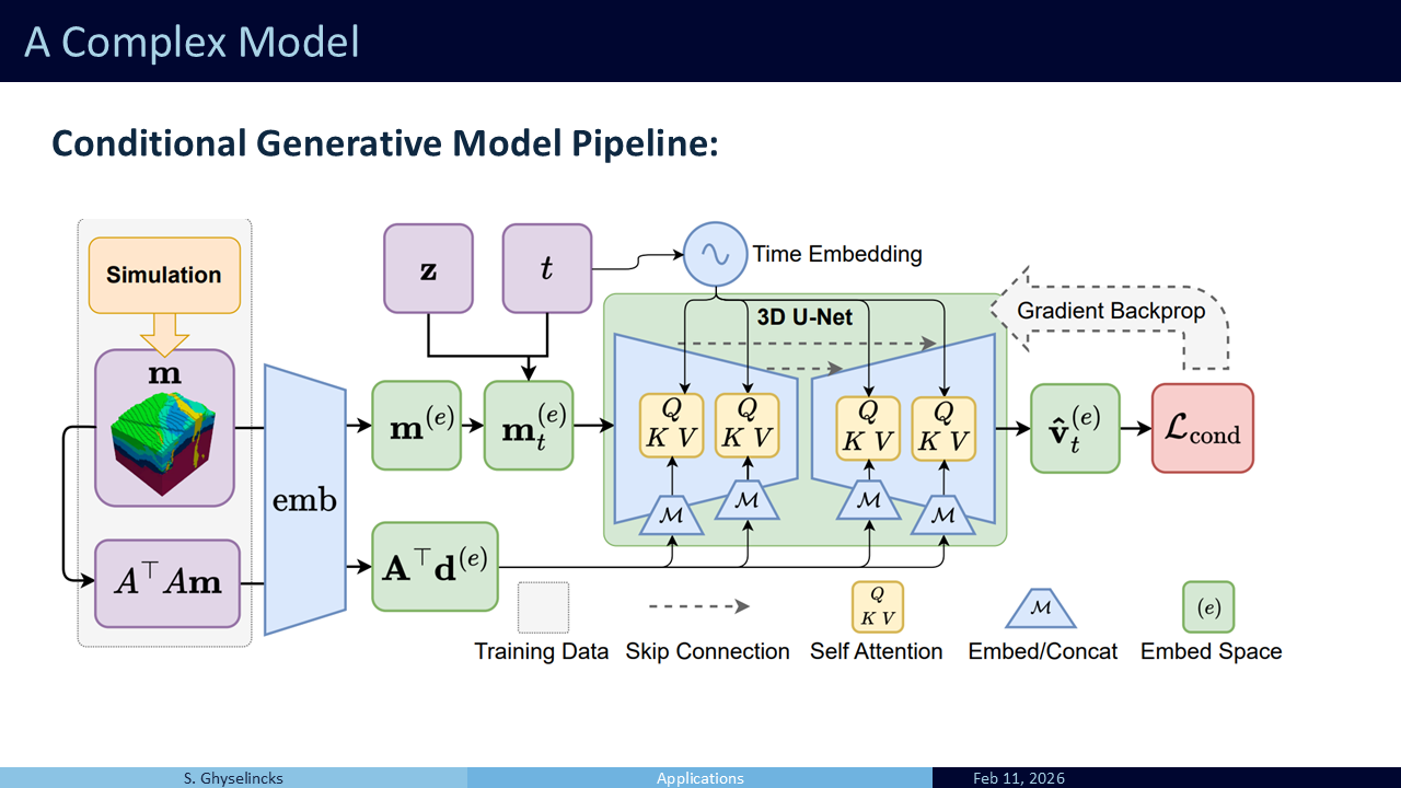 - The full pipeline for training is shown here, with simulation as an input in orange and the loss function shown on the right. More details can be found in the paper Synthetic Geology: Structural Geology Meets Deep Learning