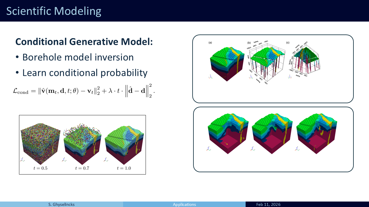 - Using a trained model on the conditional flow matchin objective, we can draw new samples from surface and borehole data.